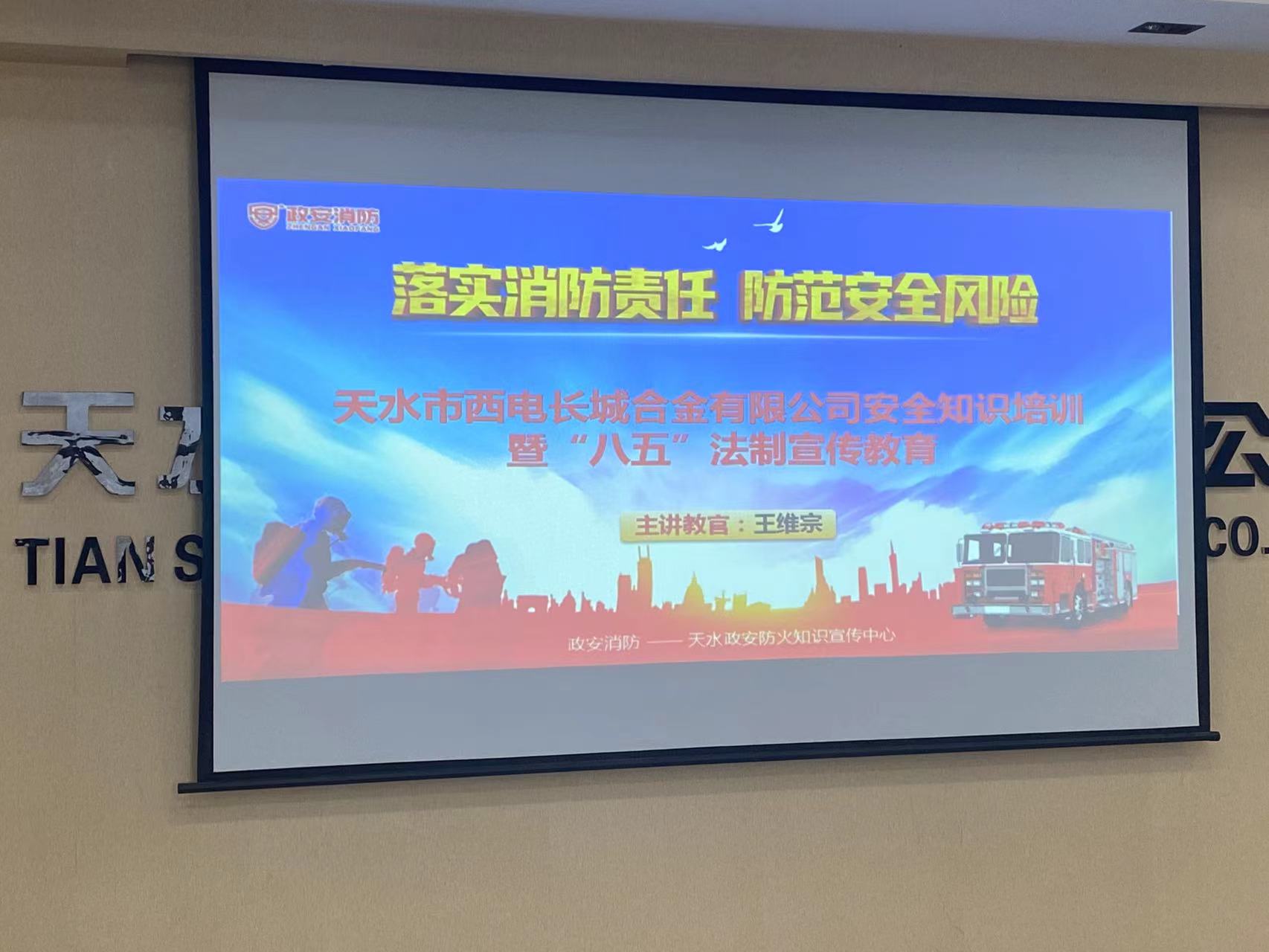 為進一步做好天水合金消防安全工作,加強員工消防安全知識和應急自救能力,更好的發(fā)揮法制工作對“十四五”時期中央企業(yè)改革發(fā)展的支撐保障作用,2022年3月3日上午,天水合金邀請政安消防培訓中心高級教官王維宗為員工進行消防法律知識“防風險、遏事故、營造安全十四五”主題講座。王教官結合近年來建筑火災、電氣火災、車輛火災等等為案例,就公司內安全隱患如何排查,春季防火注意事項,辦公室用電、車間用電,發(fā)生重大安全事故如何緊急疏散人員逃生及互救技巧等方面進行了授課。用一個個真實的事故結合《中華人民共和國消防法》...